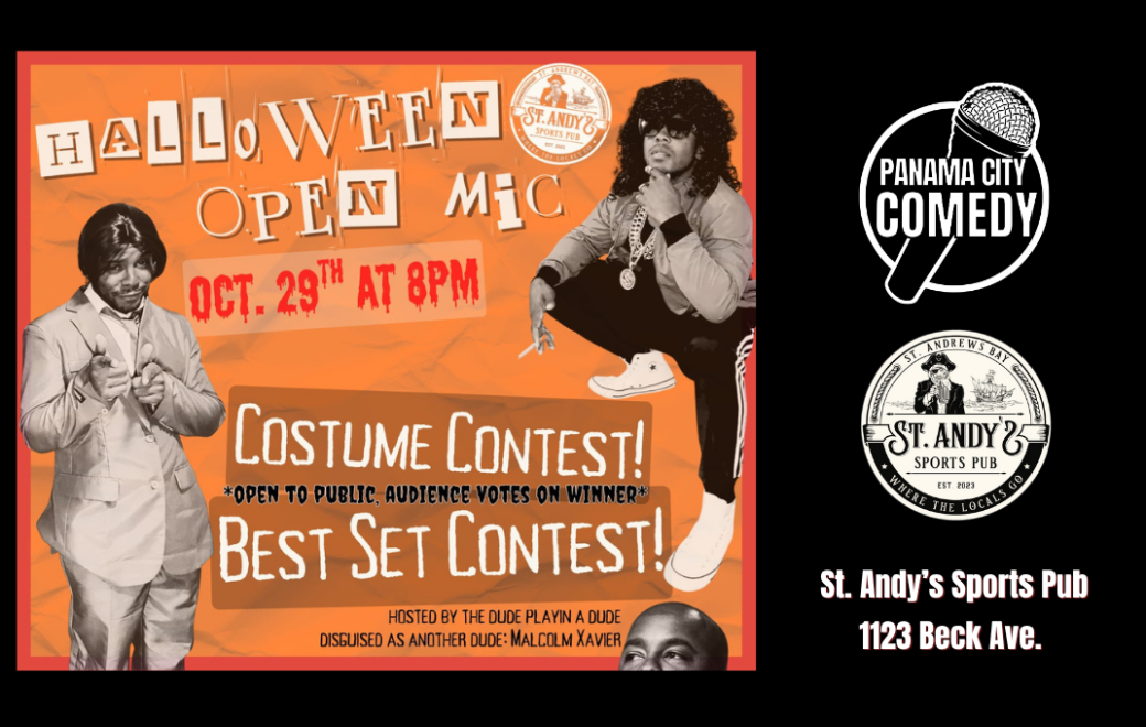 Comedy Open Mic at St. Andy's Sports Pub. Open to all experience levels. Hosted by Malcolm Xavier. Sign up in person at 7:30pm. Free to attend.